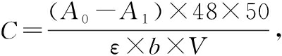 ε——靛藍二硫酸鈉摩爾吸光度,1.84×104 L/(mol·cm);